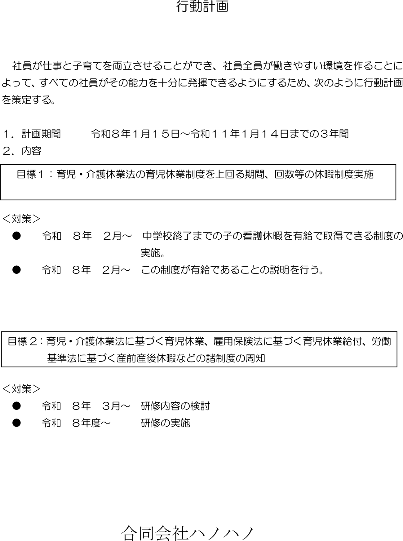 次世代法にかかる当社の取り組みとして一般事業主行動計画を掲載しました